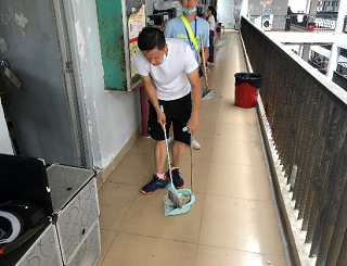 5月10日上午9时公司全体教工党员和留校员工在员工宿舍区食堂正门口集合,分3个小组,分配好清洁物资,前往男生宿舍七栋、八栋,女生宿舍六栋和九栋进行清扫。大家根据事先征集的员工意愿,对每一个需要清洁的宿舍进行地板、桌椅清洁,并进行开窗通风、清除异物。大家通过一上午的清扫,将同学们几个月未住的宿舍打扫的干干净净,充分体现了大家不怕苦、不怕累的精神,发挥了党员的先锋模范作用。