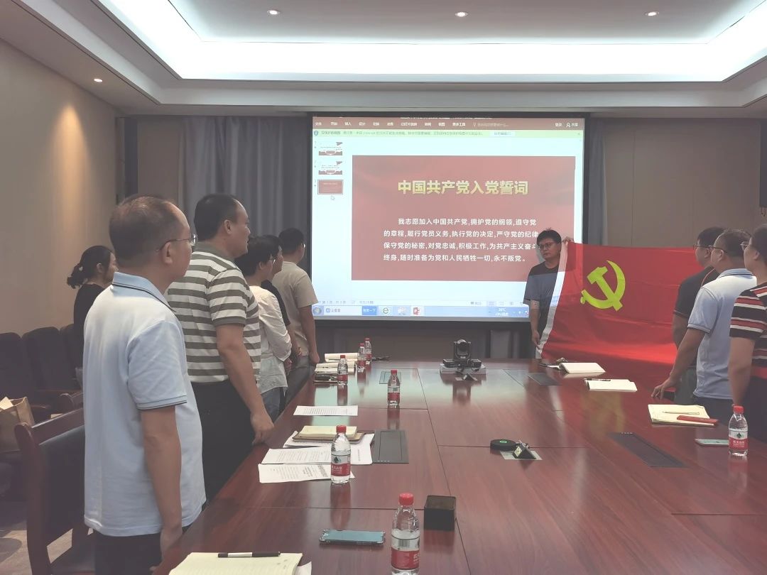 学习会开始前,党委副书记陈光宙带领全体党员重温入党誓词。全体党员面向党旗,庄严宣誓,用铿锵有力的誓言表达出内心坚定的理想信念。